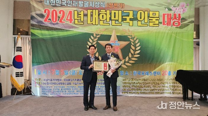 ‘2024년 대한민국 인물대상’은 정치·경제·사회·문화·연예 등 공직에서 평소 투철한 사명감과 확고한 국가관으로 타의 모범이 되고 국가와 사회발전에 기여한 이들에게 수여하는 상이다.