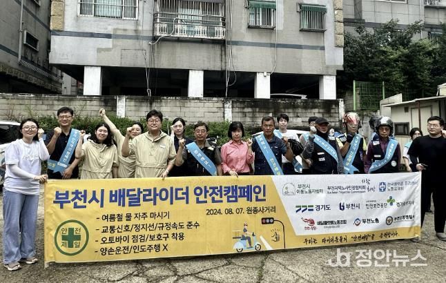 정안뉴스 박상욱 기자 | 부천시는 지난 7일 오정구 원종 사거리 일대에서 배달라이더들의 온열질환 예방 및 건강권 보호를 위한 안전 캠페인을 펼쳤다고 밝혔다.
