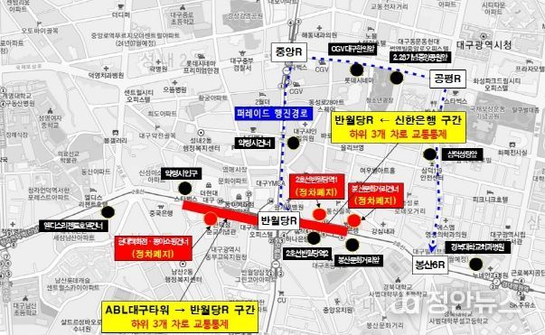 정안뉴스 안정주 기자 | 2024년 9월 28일 도심 일대에서 열리는 집회로 달구벌대로(계산오거리~봉산육거리 일부 구간)의 일부 차로가 통제됨에 따라 상당한 교통 혼잡이 예상된다.