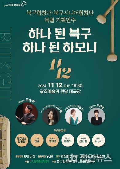 11일 북구에 따르면 오는 12일 저녁 7시 30분부터 9시까지 광주예술의전당 대극장에서 ‘북구합창단․시니어합창단 특별 기획공연’이 열린다.