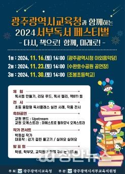 정안뉴스 기자 | 광주서부교육지원청이 오는 16일, 23일, 30일 도심 곳곳에서 독서축제 ‘2024 서부 독서 페스티벌’을 연다.