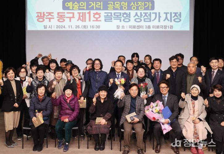 정안뉴스 기자 | 광주 동구는 예술길 일대 ‘예술의 거리’를 제1호 골목형 상점가로 지정하고 이를 기념하는 지정서 전달식을 개최했다고 밝혔다.