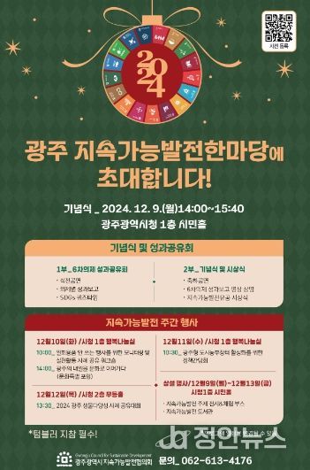 광주광역시와 광주광역시지속가능발전협의회는 오는 9일부터 13일까지 시청 시민홀에서 ‘2024 광주지속가능발전 한마당’을 개최한다.