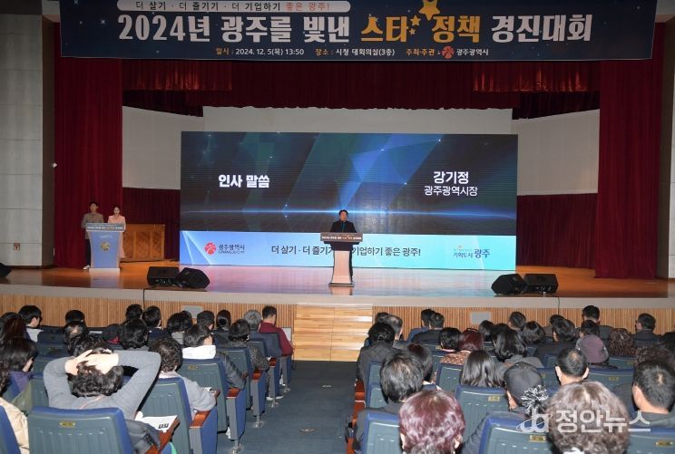광주광역시는 5일 시청 대회의실에서 ‘2024년 광주를 빛낸 스타정책 경진대회’를 열었다. 광주시가 올해 추진한 정책을 대상으로 시민들의 평가를 통해 우수 정책 10개(올해의 베스트 10)를 최종 선정했다.
