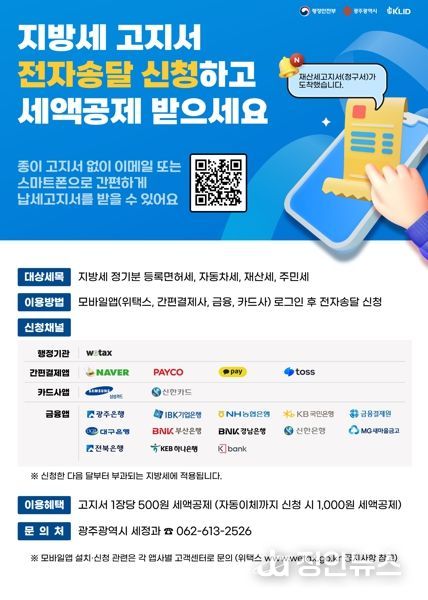 정안뉴스 기자 | 광주광역시는 납세자의 편의 증대와 탄소중립 실천을 위해 지방세 고지서 전자송달 신청을 받는다.