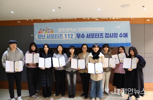 정안뉴스 기자 | 광주광역시자치경찰위원회는 24일 시청 다목적홀에서 ‘청년 서포터즈 112’ 제7기 우수 서포터즈 10명에게 감사장을 수여하고 격려했다.