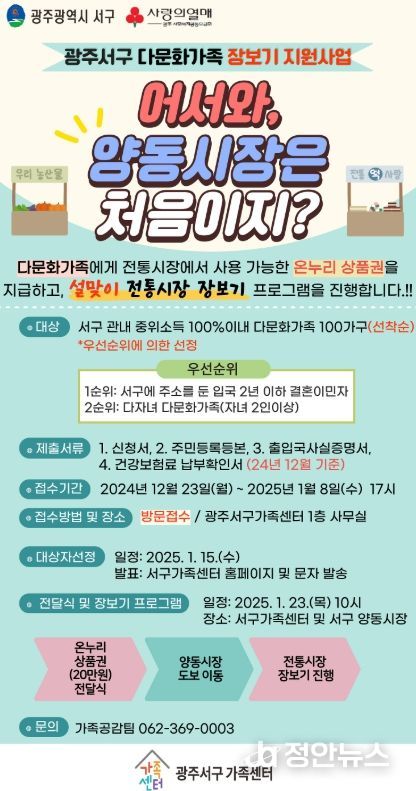 정안뉴스 기자 | 광주광역시 서구가 다문화가족을 위해 ‘어서와, 양동시장은 처음이지’사업으로 명절 전통시장 장보기를 지원한다.