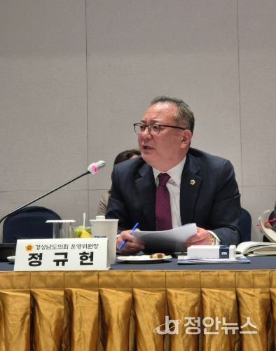 정안뉴스 여지안 기자 | 경상남도의회 정규헌 의회운영위원장은 지난 26일 전주에서 열린 ‘대한민국시도의회운영위원장협의회 제11대 전반기 제5차 정기회’에 제출한 ‘비영업용 승용자동차 취득세 인하 촉구 건의안 ‘이 의결됐다고 밝혔다.