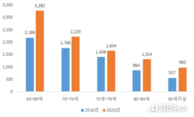 인구 고령화에 따라 치매 환자 수와 경도인지장애 진단자 수는 지속 증가하는 경향을 보였다.