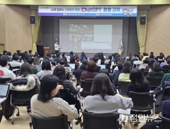 구는 배포된 챗GPT 계정을 적정한 업무에 효율적으로 활용할 수 있도록 직원들의 AI 역량 강화에도 열심이다. 매주 2회씩 정기적인 AI 교육을 시행하고 있는데, 지난 27일에 열린 특강에도 100여명이 넘는 직원들이 참여해 AI 활용 방법에 대한 높은 관심을 대변했다.