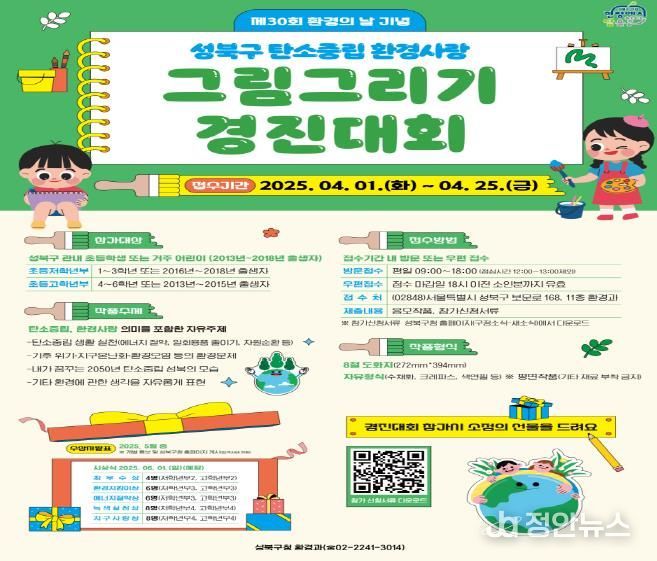 정안뉴스 기자 | 서울 성북구가 제30회 환경의 날(6월 5일)을 맞아 2025년 '탄소중립 환경사랑 그림 그리기 경진대회'를 개최한다.