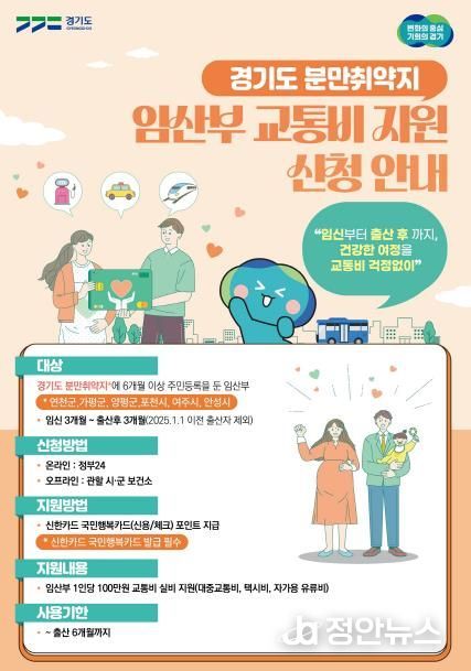 정안뉴스 기자 | 경기도가 분만취약지 6개 시군(연천·가평·양평·안성·포천·여주)의 임산부에게 4월부터 1인당 최대 100만 원의 교통비를 지급한다.