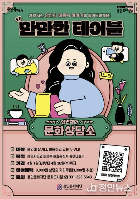 정안뉴스 기자 | 용인문화재단은 용인 시민의 문화 관심사 파악을 위해 시민 의견 수렴 프로젝트인 ‘2025 만만한 테이블’을 4월에 진행한다.