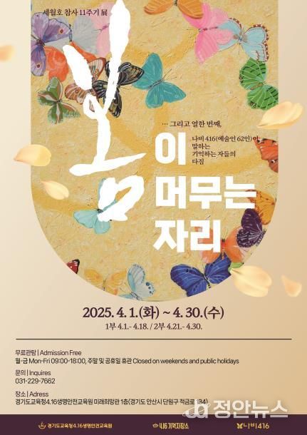 정안뉴스 기자 | 경기도교육청4.16생명안전교육원이 세월호 참사 11주기를 맞아 ‘…그리고 열한 번째, 봄이 머무는 자리’ 전시를 개최한다.