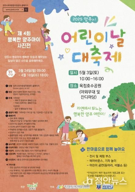 정안뉴스 기자 | 양주시가 ‘양주시육아종합지원센터’에서 가정의 달을 맞아 영유아 자녀를 둔 가정과 기관을 대상으로 ‘제4회 행복한 양주아이 사진전’을 개최한다고 1일 밝혔다.