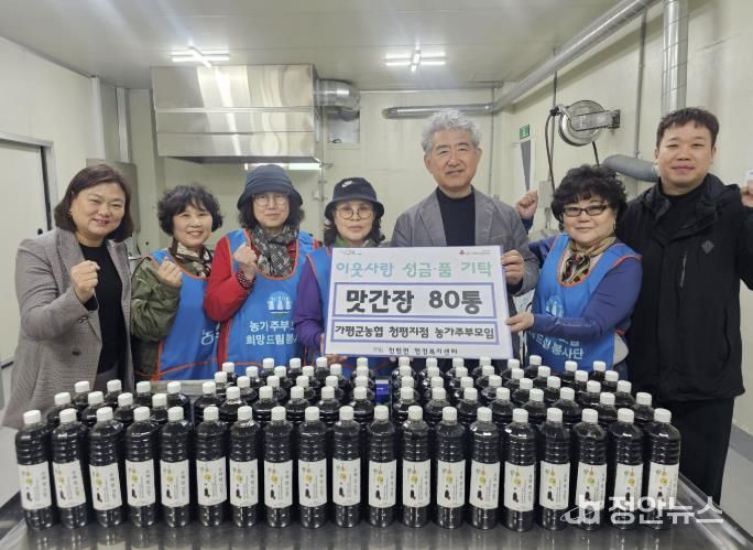 정안뉴스 기자 | 가평군농협 청평지점 농가주부모임은 최근 지역 내 어려운 이웃을 위해 맛간장 80통을 청평면에 기탁하고 전달식을 가졌다.