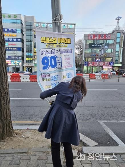 정안뉴스 기자 | 수원시 팔달구는 쾌적하고 안전한 도시환경을 조성하기 위해 지난 28일 관내 불법 유동광고물에 대해 야간 단속을 실시했다. 이번 단속은 특히 불법 유동광고물이 많은 매산동과 인계동의 상점 밀집 지역을 중심으로 진행했다.