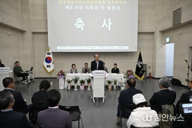 한국예총 동두천지회는 지난 29일 복합문화커뮤니티센터 2층 공연장에서 제8대 김경식 회장의 이임식과 제9대 김민호 회장 취임식을 개최했다. 이날 행사는 축시와 축하공연을 시작으로 각계의 축하와 함께 진행됐다.