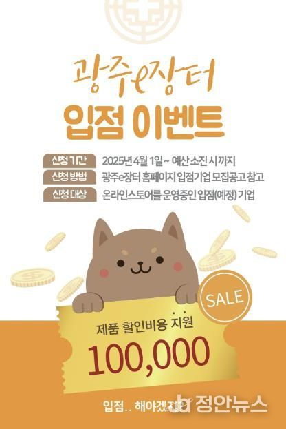 정안뉴스 기자 | 광주시와 경기테크노파크는 광주시 온라인 홍보관 ‘광주e장터’ 입점 기업을 대상으로 할인쿠폰 지원 이벤트를 개시한다고 1일 밝혔다.
