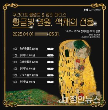 정안뉴스 기자 | 민선8기 김포시가 김포아트빌리지 미디어아트센터 내 실감형 미디어아트 전시공간을 구축한 이래, 김포미디어아트센터에서 선보이는 두 번째 작품인 구스타프 클림트와 앙리마티스의 '황금빛 영원, 색채의 선율' 미디어아트 전시가 열린다.