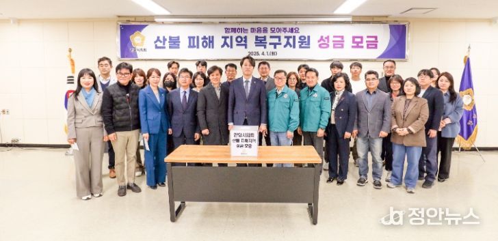 정안뉴스 기자 | 안양시의회는 1일 시의회 2층 소회의실에서 산불 피해 지역 복구를 위한 성금 모금 활동을 시작했다고 밝혔다.