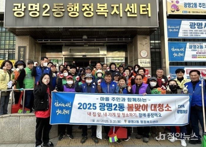 정안뉴스 기자 | 광명시 광명2동 행정복지센터는 지난 3월 31일 주민과 단체원 50여 명이 참여한 가운데 봄맞이 대청소를 진행하며 쾌적하고 깨끗한 마을 환경 조성에 나섰다.