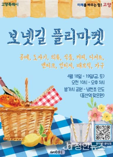 정안뉴스 기자 | 고양특례시는 일산동구 정발산동에 위치한 엔틱거리 ‘보넷길’에서 오는 4월 18일과 19일 양일간 ‘보넷길 플리마켓’이 열린다고 밝혔다.