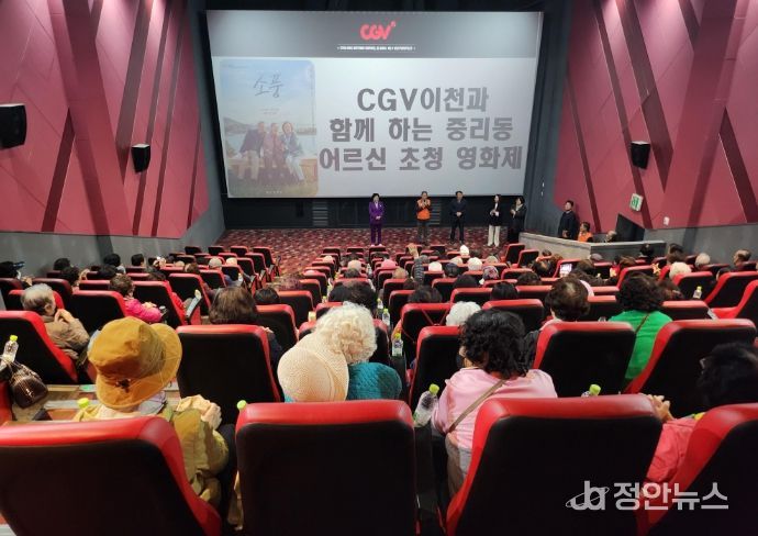중리동 주민자치위원으로 활동하며 이 행사를 주관한 이천 CGV 이현숙 대표는 “지역 봉사에 동참하는 의미에서 마을 어르신들을 초청하여 영화 관람 기회를 마련하게 됐다”라며, “우리 어르신들이 영화관 나들이를 통해 더 즐겁게 서로 소통하는 시간을 보내길 바라며 앞으로 이런 시간을 좀 더 자주 마련하도록 하겠다”라고 말했다.