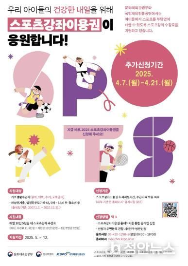 정안뉴스 기자 | 은평구는 저소득층 아동과 청소년의 스포츠 체험 기회 제공을 위해 ‘스포츠강좌이용권 지원사업’ 대상자를 오는 7일부터 추가 모집한다고 밝혔다.