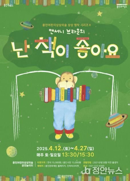 정안뉴스 기자 | 용인문화재단은 4월과 5월, 세계적 동화 작가 ‘앤서니 브라운’의 가족 뮤지컬 2개 작품 ‘난 책이 좋아요’와 ‘우리가족’을 용인어린이상상의숲 공연놀이터에서 개최 한다.