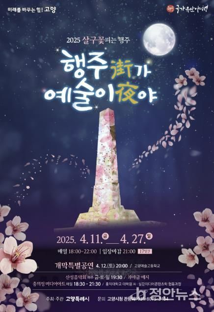 정안뉴스 기자 | 고양특례시 대표 축제 ‘행주가(街) 예술이야(夜)’가 살구꽃 피는 행주산성에서 4월 11일부터 27일까지 17일간 열린다.