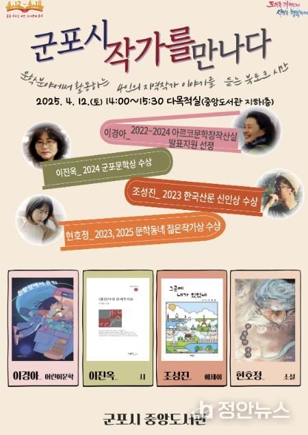 정안뉴스 기자 | 도서관의 날인 4월 12일을 맞이하여 군포시 중앙도서관에서는 지역 작가 북토크 행사인 '군포시 작가를 만나다'를 개최한다.