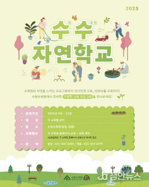 수원시공원녹지사업소 관계자는 “수원수목원이 자연을 배우고 경험하는 열린 교육의 장으로 자리잡길 바란다”며 “시민이 참여할 수 있는 수목원 프로그램을 지속해서 확대해 나가겠다”고 밝혔다.