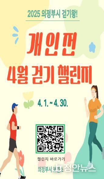 정안뉴스 기자 | 의정부시 보건소는 4월 1일부터 10월 31일까지(단, 7‧8월 제외) 시민을 대상으로 비대면 걷기 사업 ‘의정부시 걷기왕! 개인전 챌린지’를 운영한다.