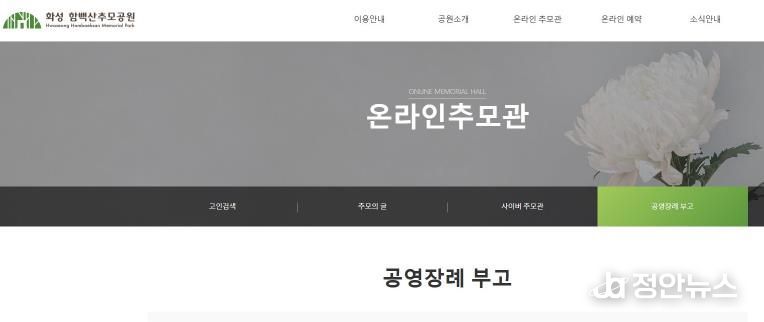 정안뉴스 기자 | 화성특례시가 화성 함백산 추모공원 홈페이지에 ‘무연고 사망자 부고 공지란’을 개설했다고 2일 밝혔다.