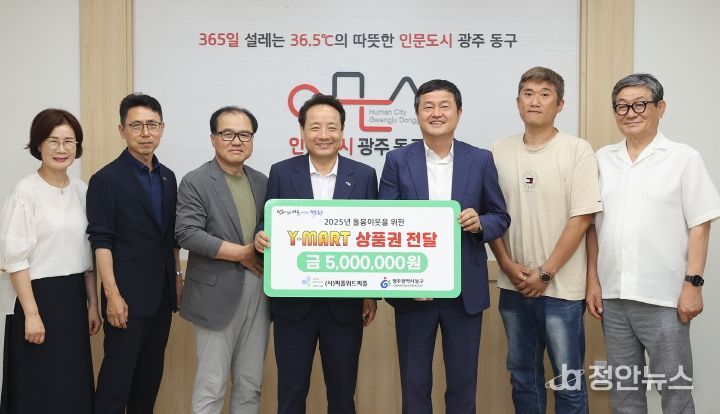 정안뉴스 안정주 기자 | 광주 동구는 지난 30일 와이마트 부설 (사)피플위드피플(이사장 김성진)이 동구 고립 위기가구를 위해 써달라며 와이마트 상품권 5백만 원을 전달했다고 밝혔다.
