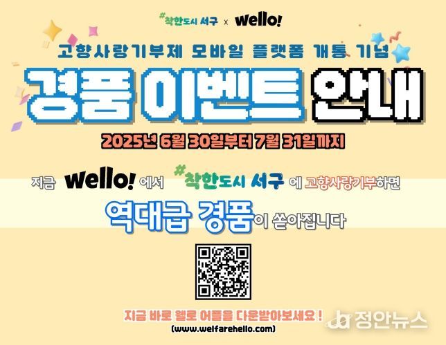 정안뉴스 안정주 기자 | 광주광역시 서구가 ‘고향사랑기부제 모바일 플랫폼 웰로’를 정식 개통했다.