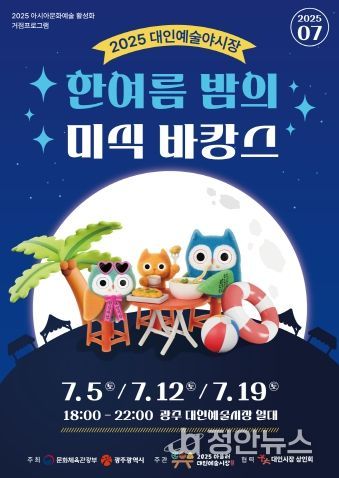 정안뉴스 안정주 기자 | 광주광역시는 7월 매주 토요일(5‧12‧19일) 오후 6시부터 10시까지 동구 대인예술시장 일대에서 ‘한 여름밤의 미식 바캉스’를 주제로 ‘2025 대인예술야시장’을 연다.