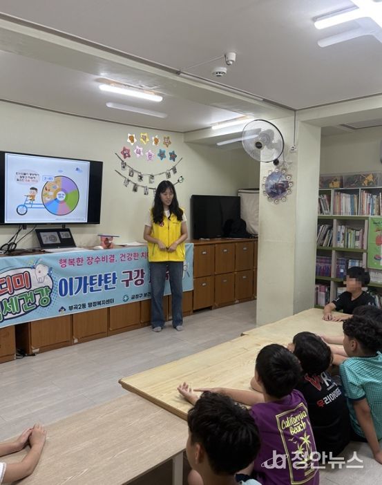 정안뉴스 황정혜 기자 | 부산시 금정구 부곡2동 행정복지센터 찾아가는 보건복지팀은 지난 21일 관내 취약계층 아동을 대상으로 구강 및 영양 건강증진을 위해'봉디미 백세건강, 이가탄탄'프로그램을 운영했다.