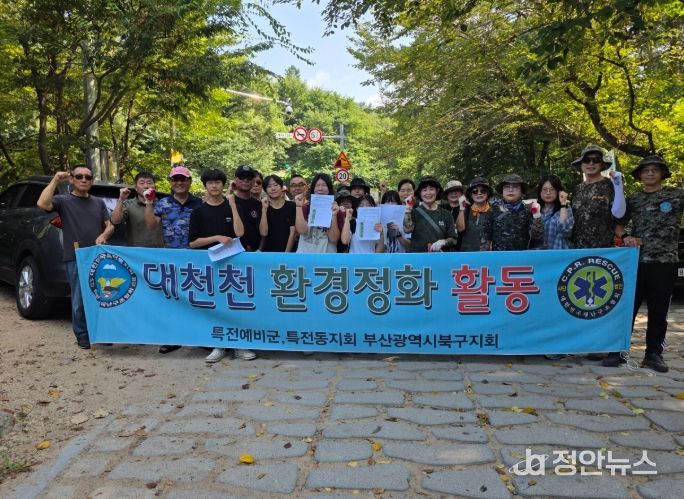 정안뉴스 황정혜 기자 | 부산 북구는 지난 23일 북구 특전사동지회 사회봉사대(회장 구성모)가 자원봉사자들과 함께 대천천 일대에서 자연보호를 위한 환경정화 활동을 전개했다고 밝혔다.