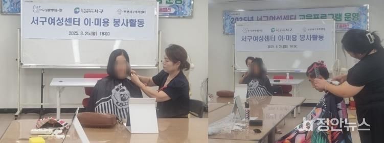 정안뉴스 황정혜 기자 | 서구 살롱헤어봉사단은 지난 25일 서구 가족복지센터 5층(서구여성센터)에서 취약계층 11명을 대상으로 이미용 봉사 활동을 실시했다.