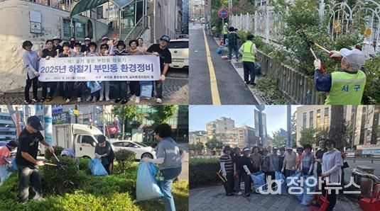 정안뉴스 황정혜 기자 | 부산 서구 부민동 통장협의회, 실버환경지킴이, 동 직원20여 명은 지난 25일 부민초등학교, 부민사거리, 구덕로 주변에서 환경정비 활동을 실시했다.
