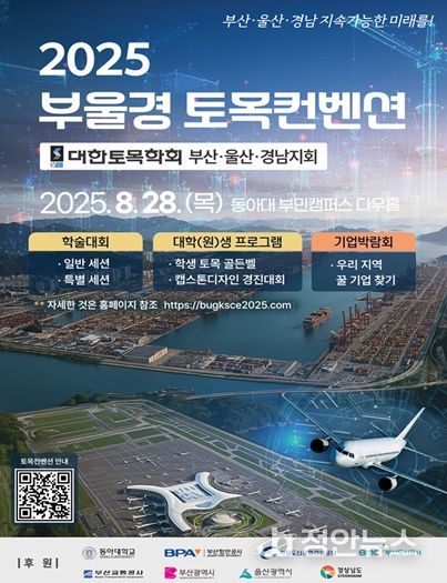 정안뉴스 황정혜 기자 | 부산시는 부울경 지역 지·산·학·연·관의 건설 전문가와 대학생이 참여하는 '2025 부울경 토목컨벤션'이 오늘(28일) 오전 9시 동아대학교 부민캠퍼스에서 열린다고 밝혔다.
