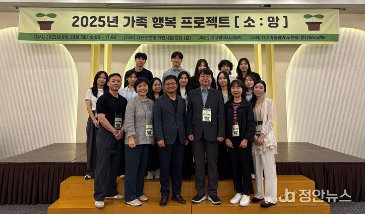 정안뉴스 안정주 기자 | 대구시교육청은 8월 30일 오전 10시부터 오후 5시까지 그랜드호텔에서 중·고 학생 20가족을 대상으로‘가족 행복 프로젝트 [소:망]’을 개최한다.‘소:망’은 ‘가족 간 소통하며 희망 키우기’라는 의미를 담고 있다.
