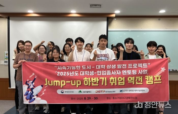 정안뉴스 안정주 기자 | 대구광역시는 지난 8월 29일부터 30일까지 1박 2일간 중소벤처기업진흥공단 대구경북연수원에서 ‘Jump-Up! 대학생 취업 역전캠프’를 성공적으로 개최했다.