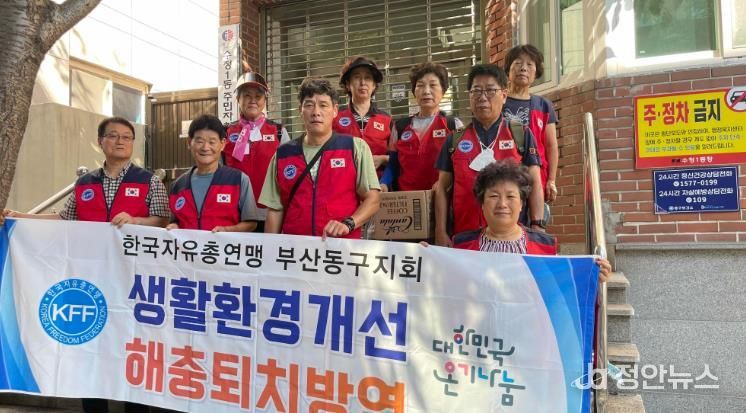 정안뉴스 황정혜 기자 | 부산 동구 한국자유총연맹 부산동구지회 수정1동위원회 일동은 지난 30일 관내 생활환경개선을 위한 해충퇴치방역을 실시했다.