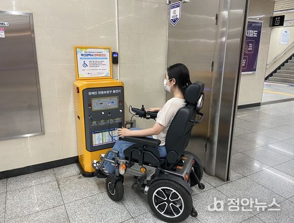 정안뉴스 황정혜 기자 | 부산시는 지난해에 이어, 도시철도 역사 등에 설치된 장애인 전동보조기기 급속충전기 중 내구연한이 경과된 18대를 추가로 교체 완료했다고 밝혔다.