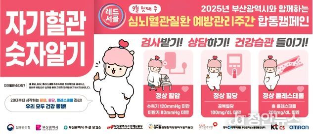 정안뉴스 황정혜 기자 | 부산시는 심뇌혈관질환 예방관리 주간(9.1.~9.7.)을 맞아 오늘(3일) 오전 10시 30분부터 오후 1시까지 시청 대강당 앞에서 '2025년 자기혈관 숫자알기, 레드서클 캠페인'을 개최한다고 밝혔다.