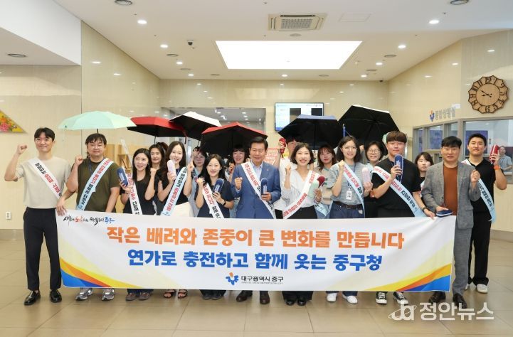 특히 “작은 배려와 존중이 큰 변화를 만듭니다”, “연가로 충전하고 함께 웃는 중구청” 등의 구호를 통해 직원 공감을 끌어냈다.