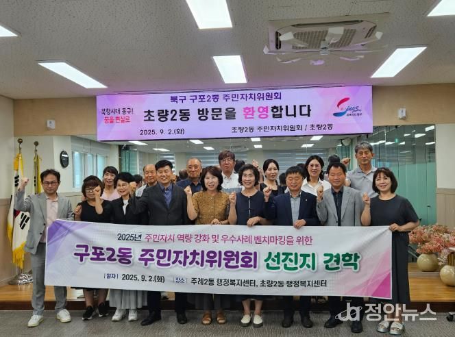 정안뉴스 황정혜 기자 | 부산 동구 초량2동 주민자치회는 지난 2일 부산 북구 구포2동 주민자치회의 벤치마킹 방문을 맞이했다.